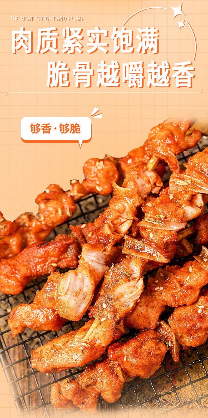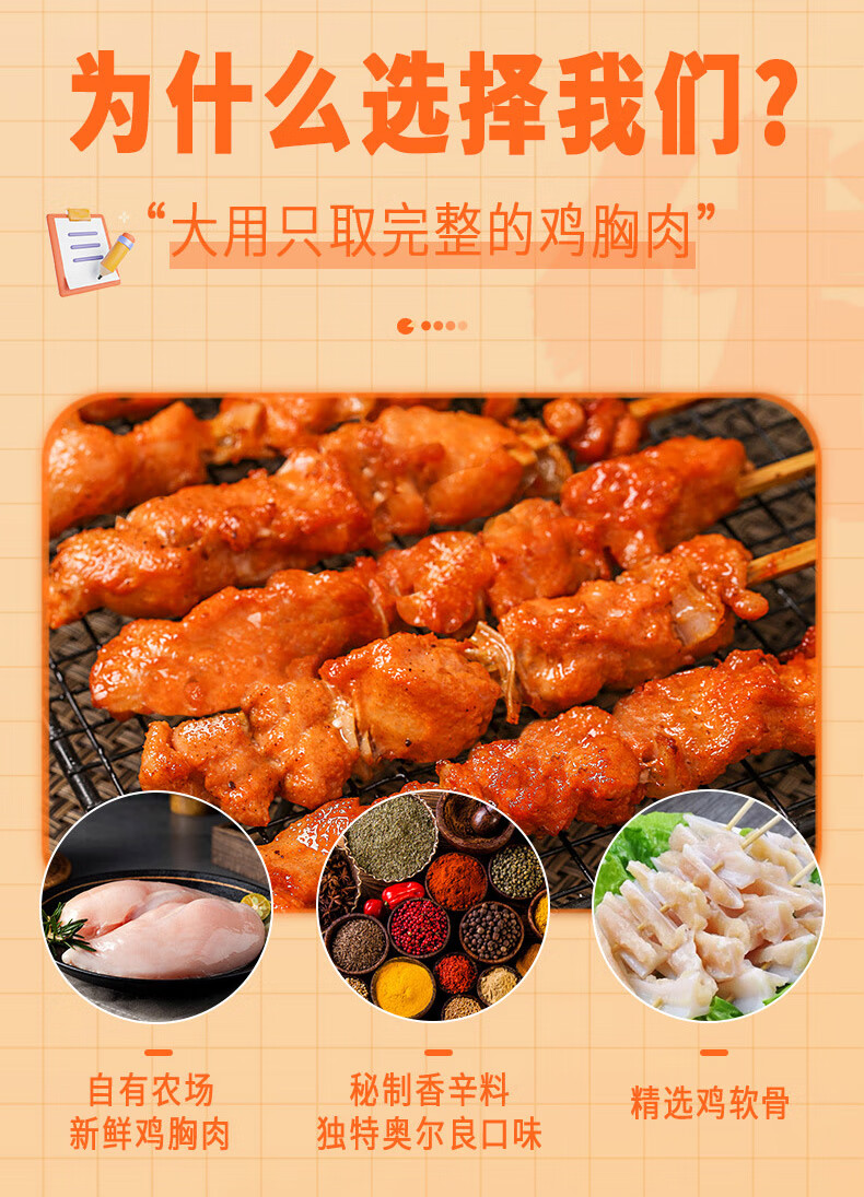 大用骨肉相连2斤 鸡肉串鸡软骨串烧烤冷冻鸡脆骨连串油炸小吃炸串清真