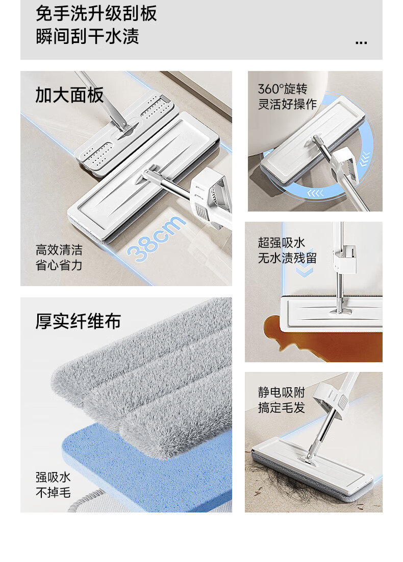五月花平板拖把38cm2布拖把家用一拖净免手洗2026拖地神器墩布