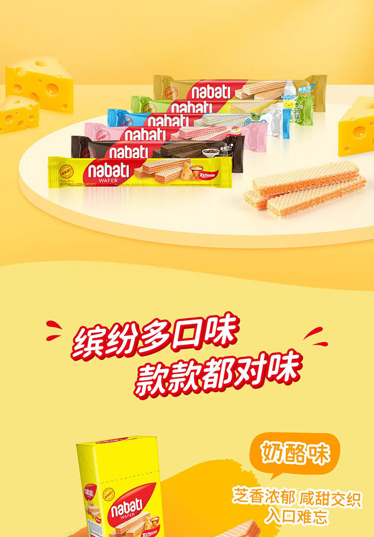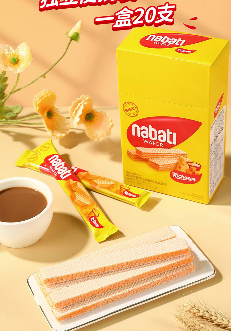 丽芝士(Richeese)纳宝帝印尼进口威化饼干奶酪味200g/盒 休闲零食早餐代餐点心送礼