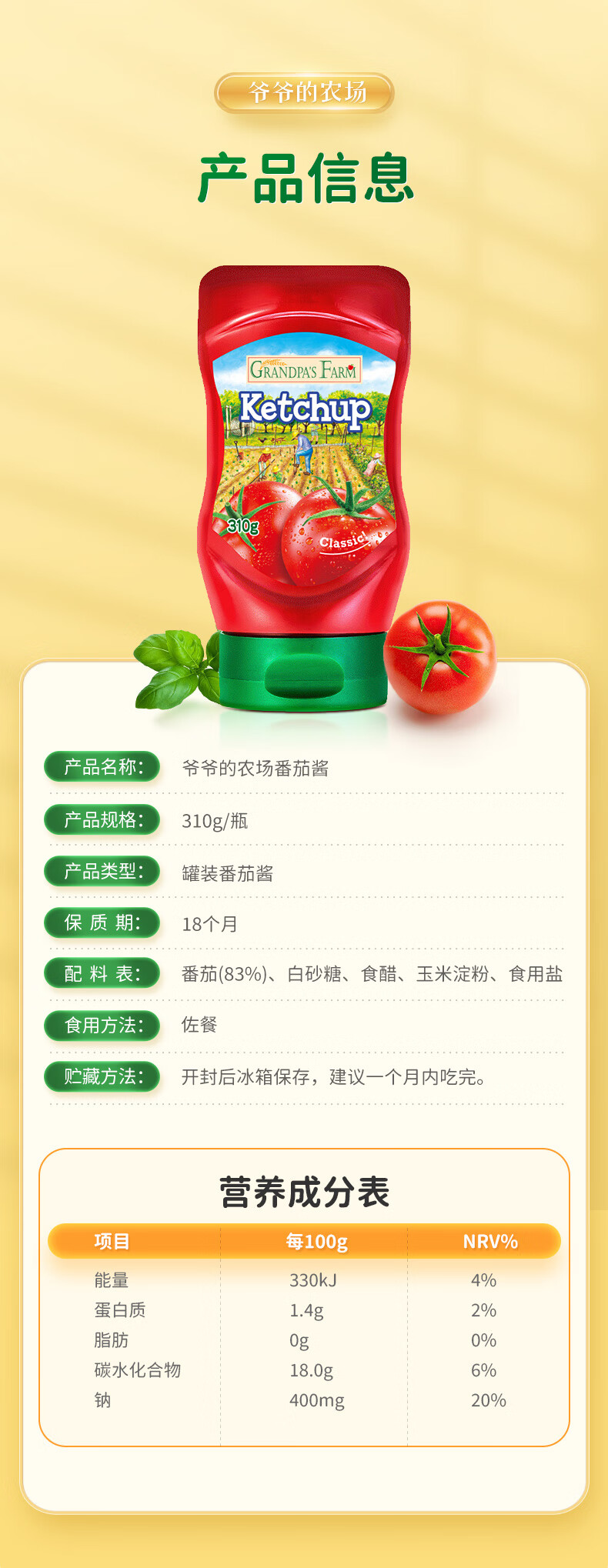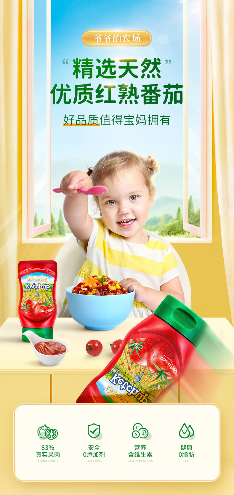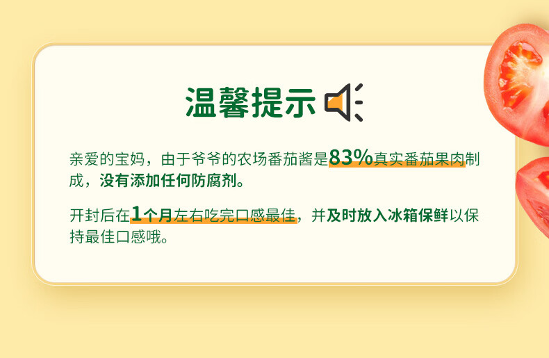 爷爷的农场番茄酱310g 俄罗斯进口儿童意面酱挤压瓶 赠宝宝辅食食谱