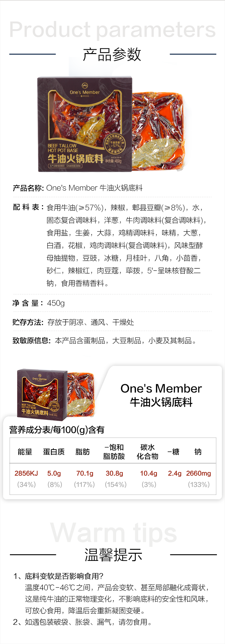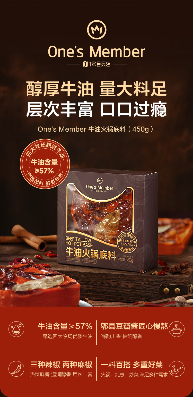 One's Member牛油火锅底料 450g 麻辣烫香锅冒菜干锅四川风味