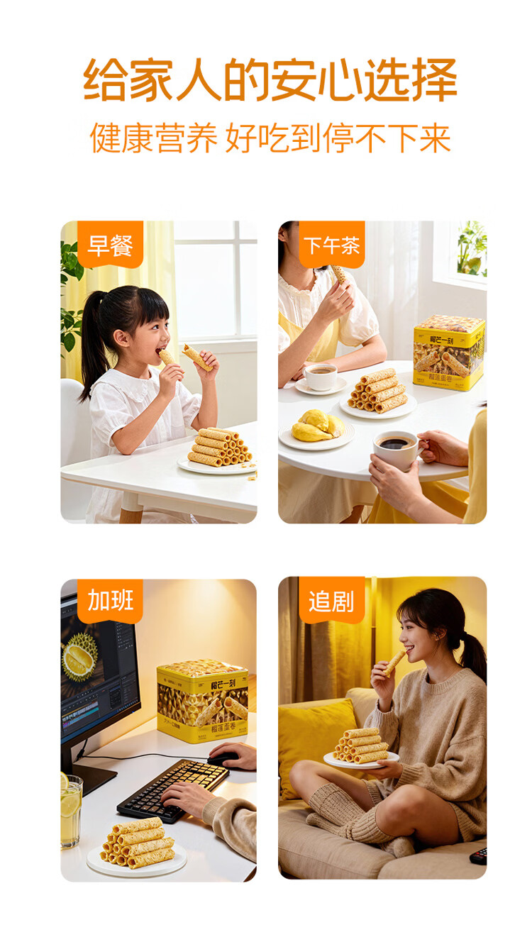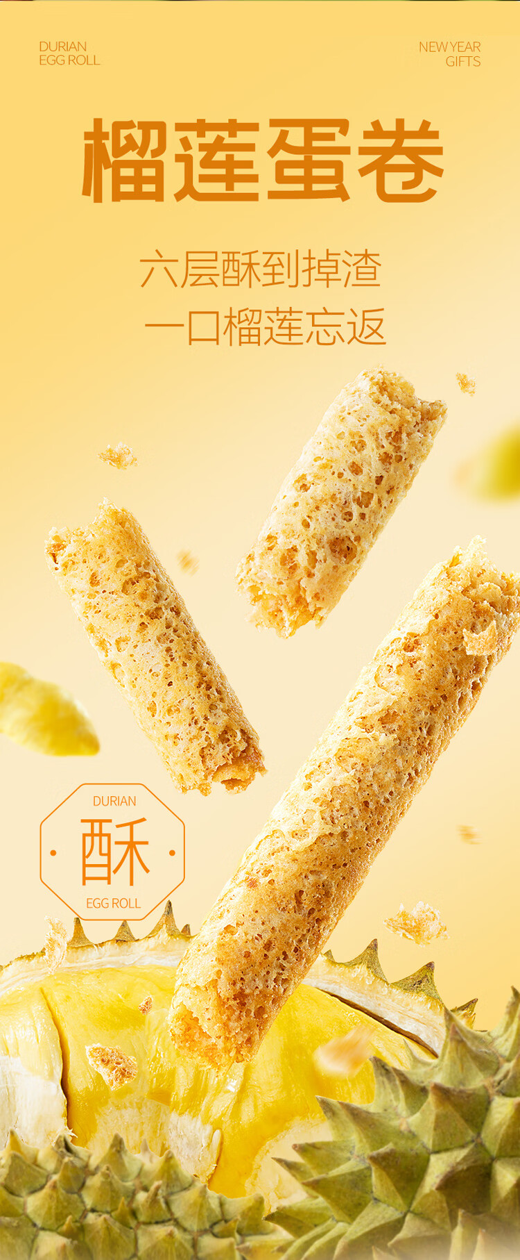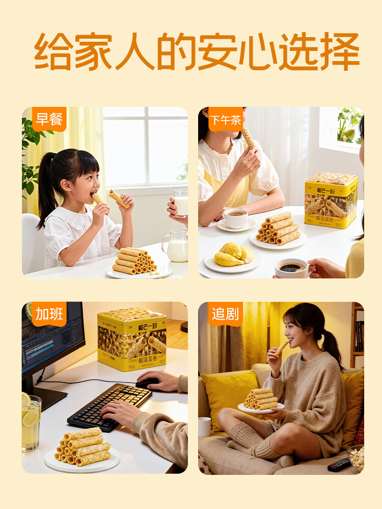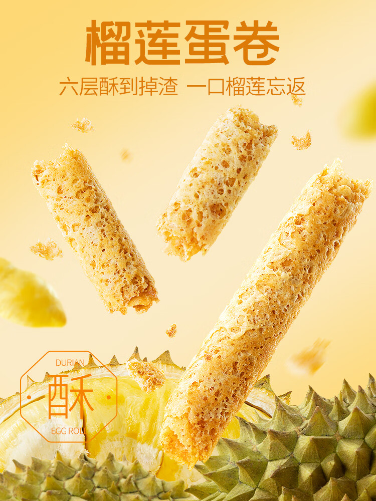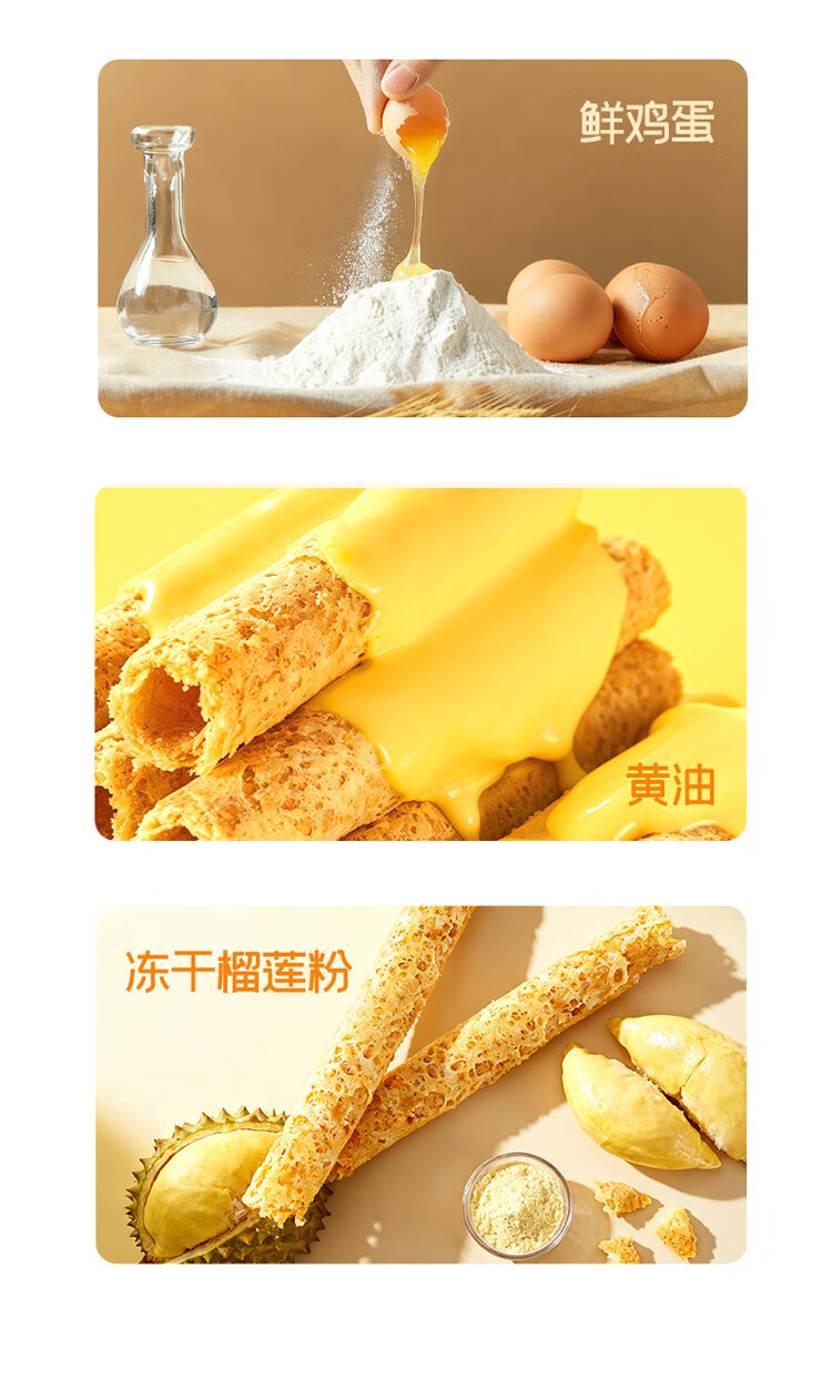 榴芒一刻 榴莲蛋卷年货礼盒手工黄油鸡蛋卷320g休闲零食饼干新年团购送礼