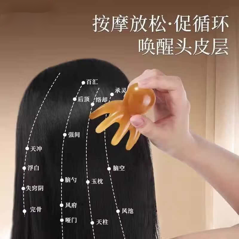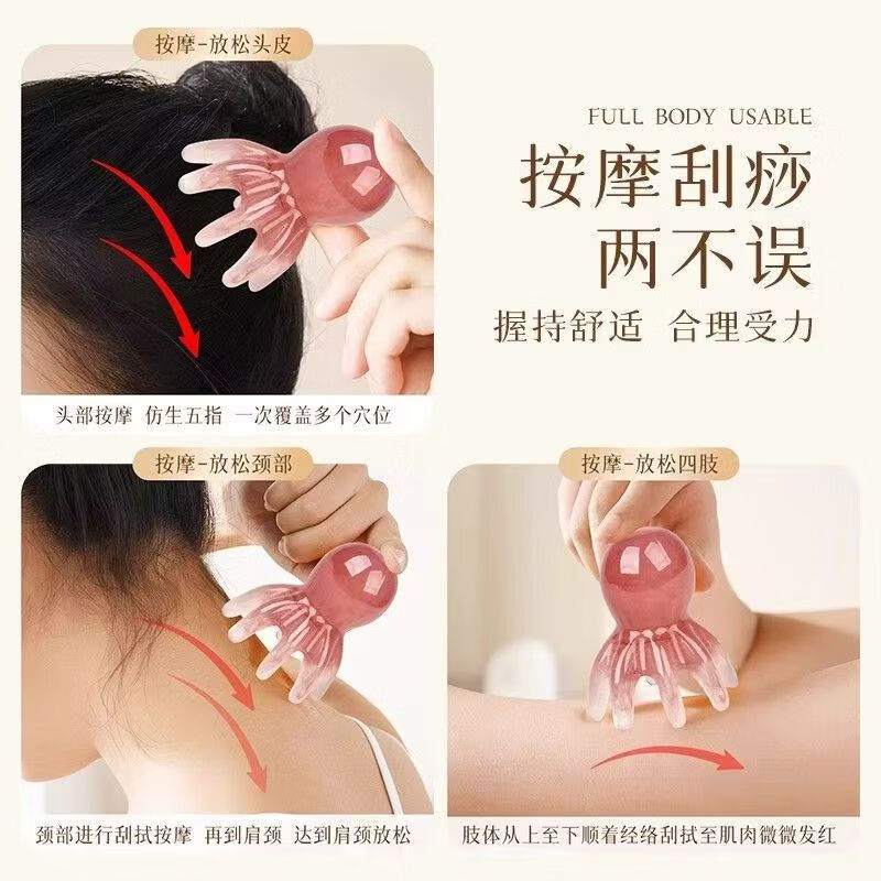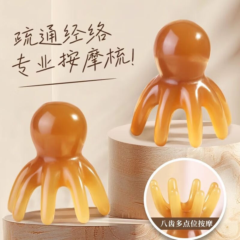八爪鱼头部经络按摩梳树脂小章鱼梳头皮穴位按摩器肩颈刮痧护理梳 大号章鱼按摩梳【1个】粉色
