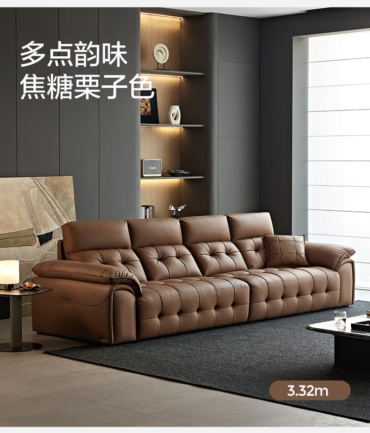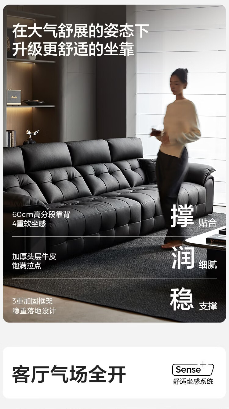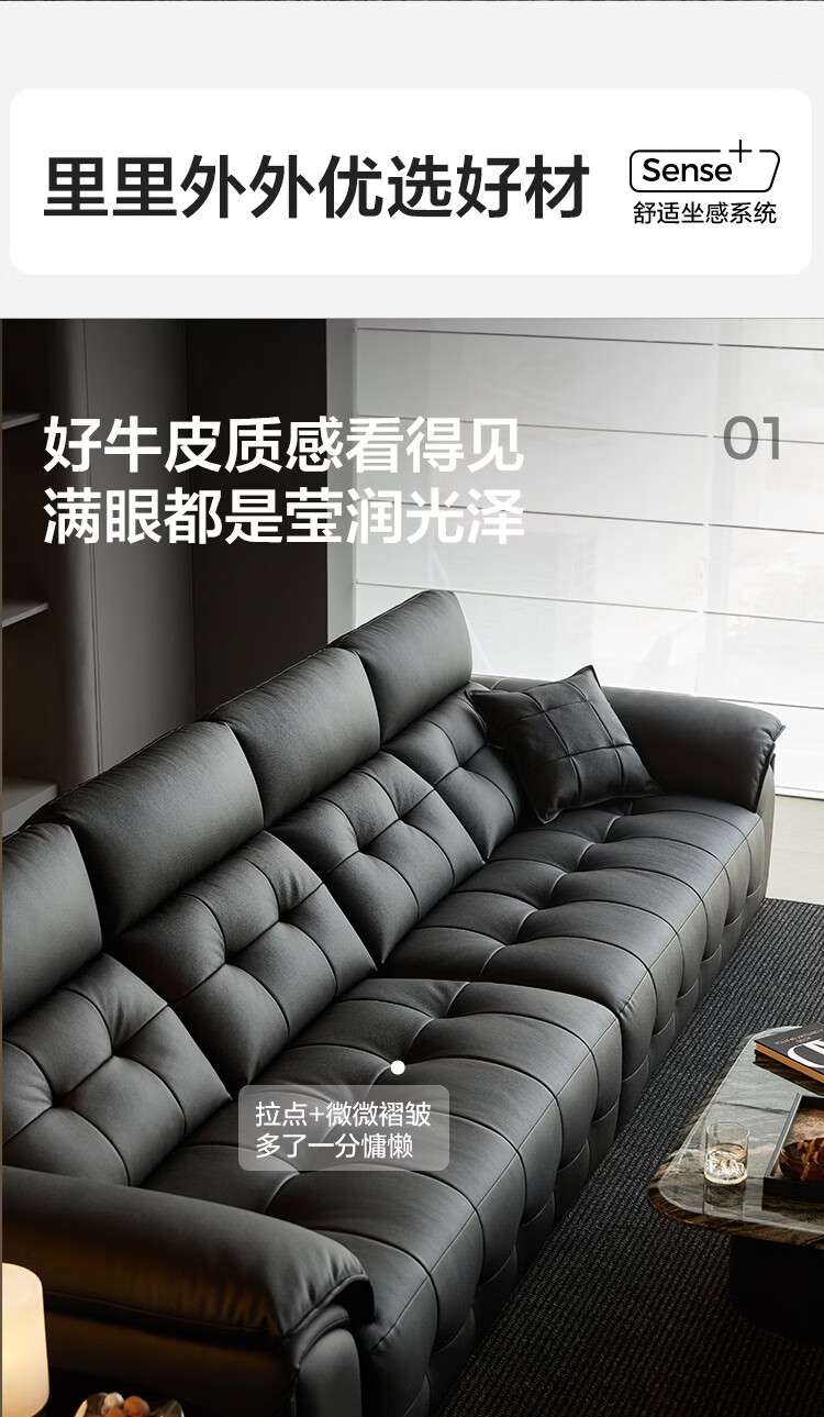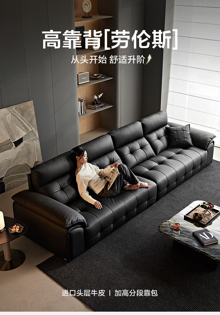 林氏家居劳伦斯真皮沙发客厅2025新款中古风大黑牛头层牛皮意式极简PS513 【3.62米|黑茶色】加厚头层牛皮
