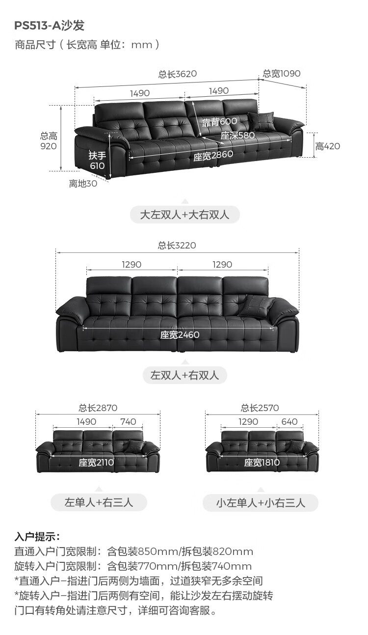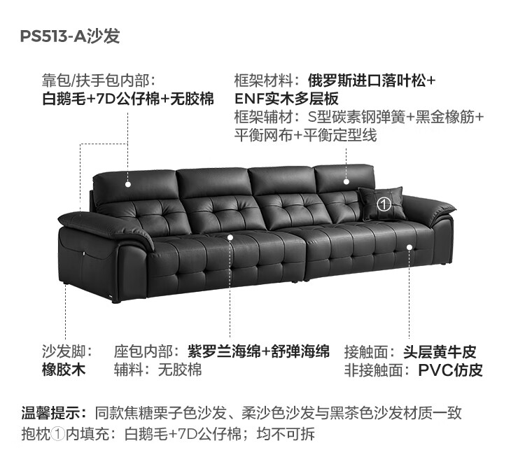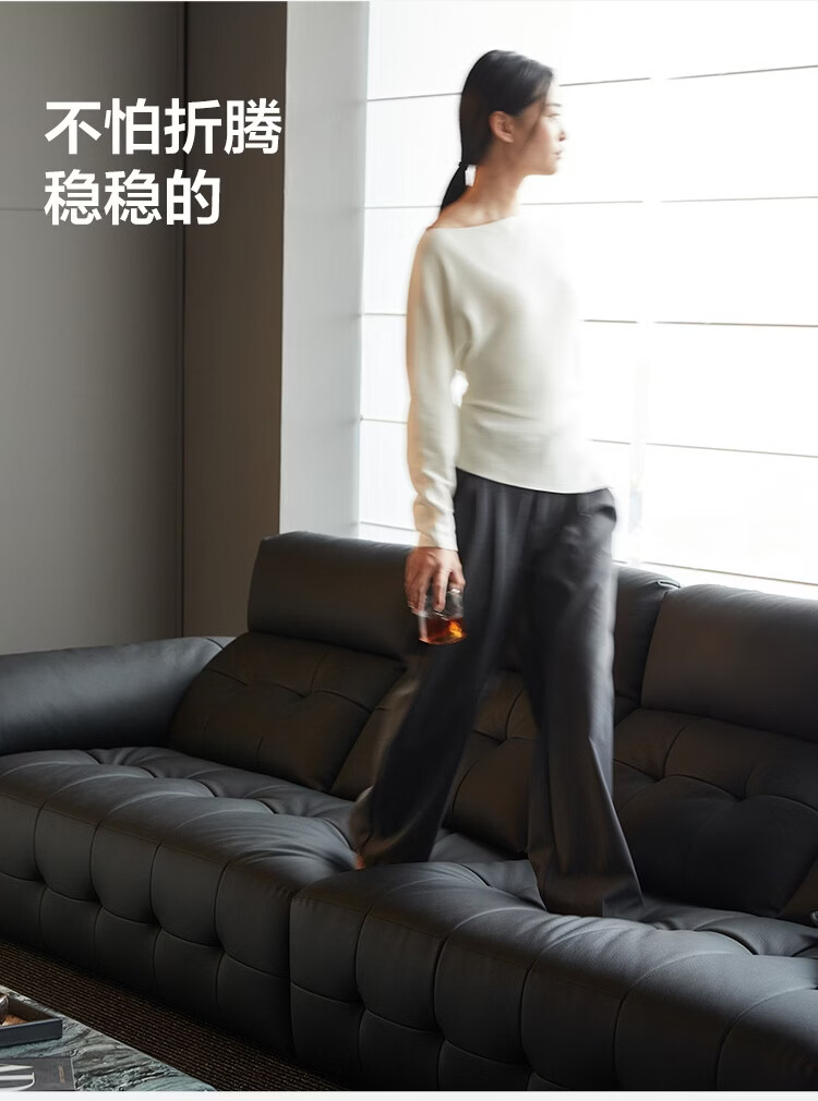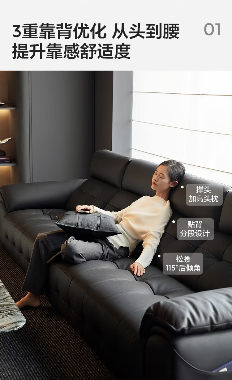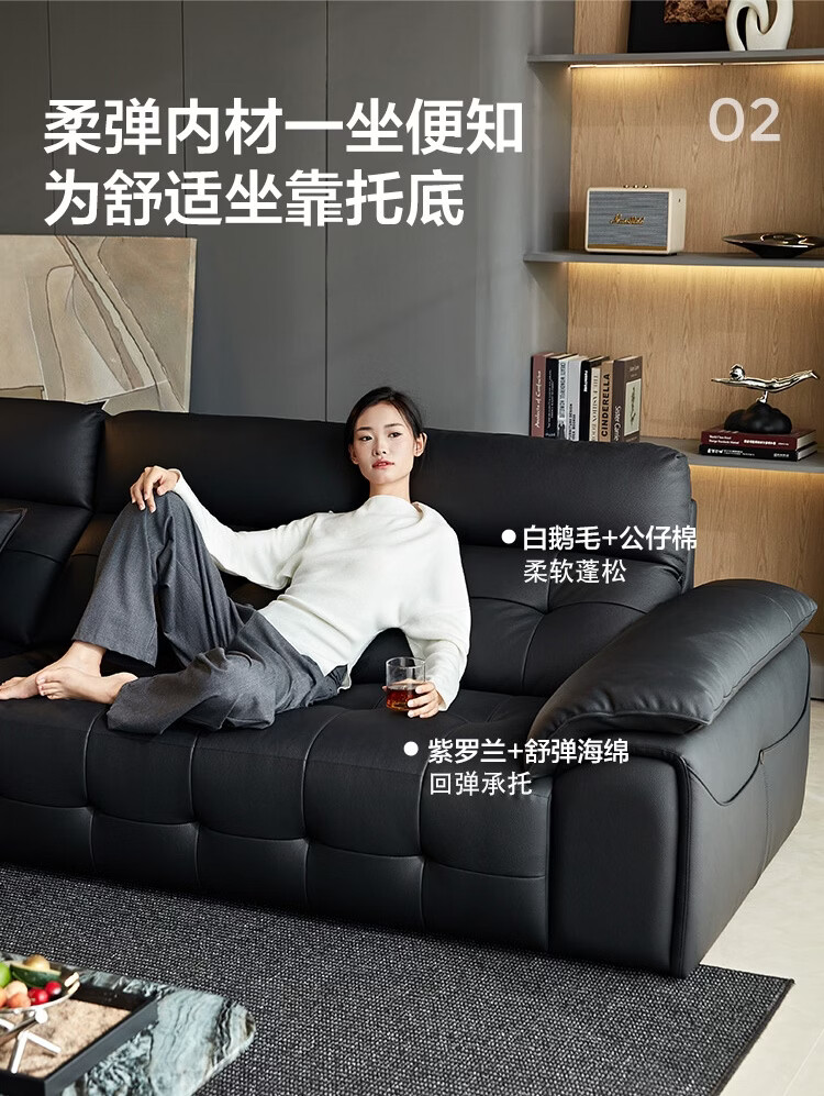 林氏家居劳伦斯真皮沙发客厅2025新款中古风大黑牛头层牛皮意式极简PS513 【3.62米|黑茶色】加厚头层牛皮