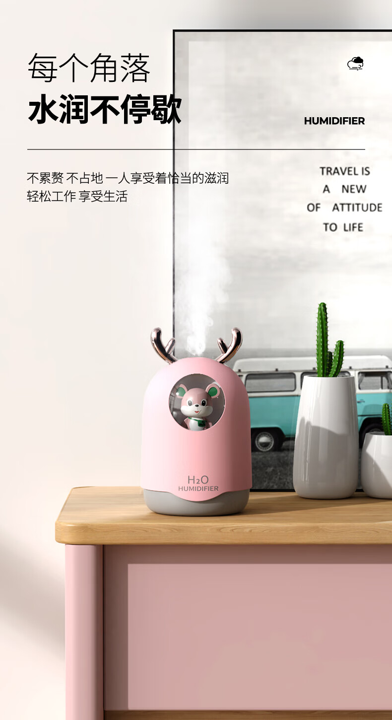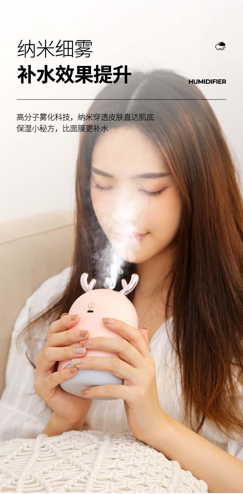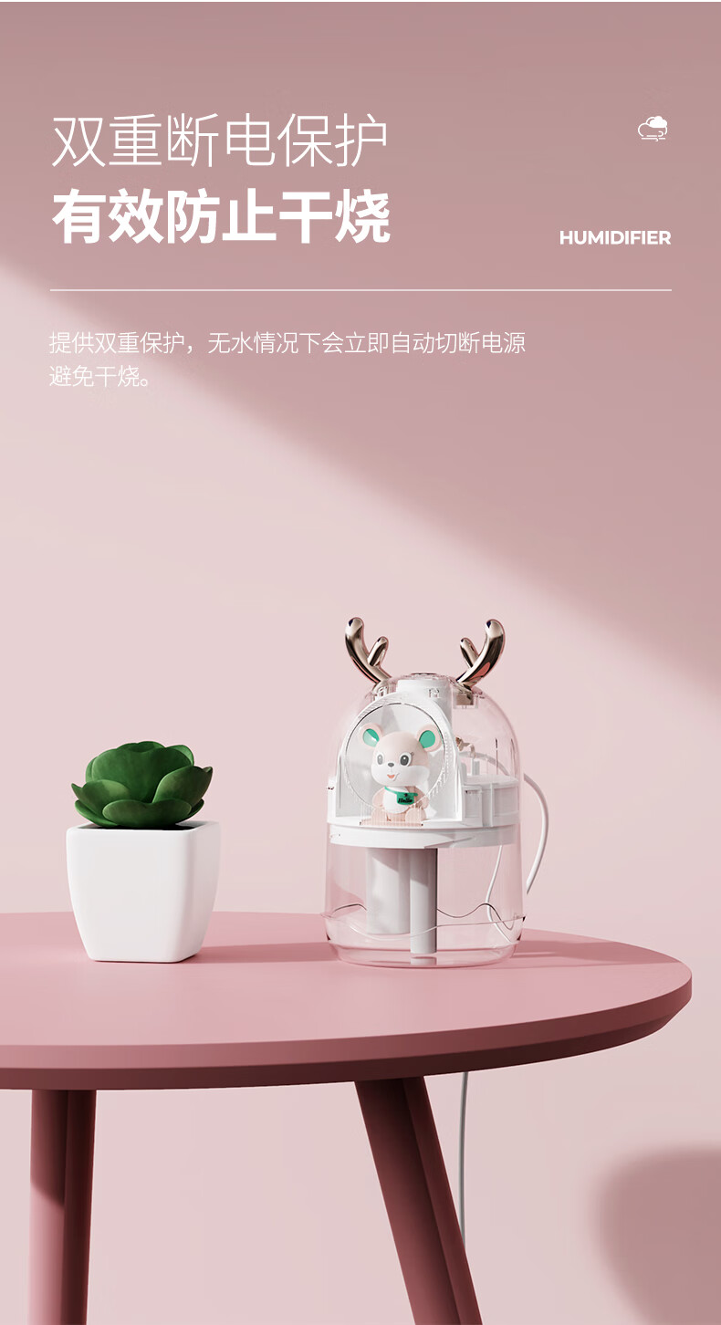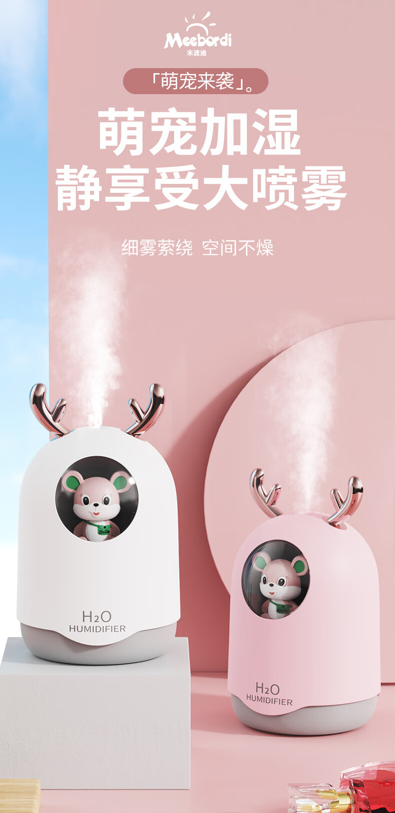 米波迪(Meebordi)【情人节礼物】空气加湿器家用超静音便携迷你大雾空气净化器萌宠保湿补水仪喷雾卧室美容仪 白