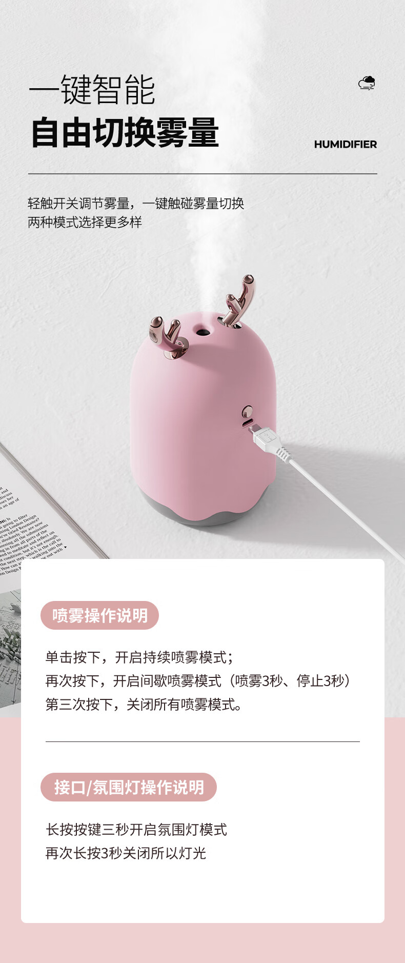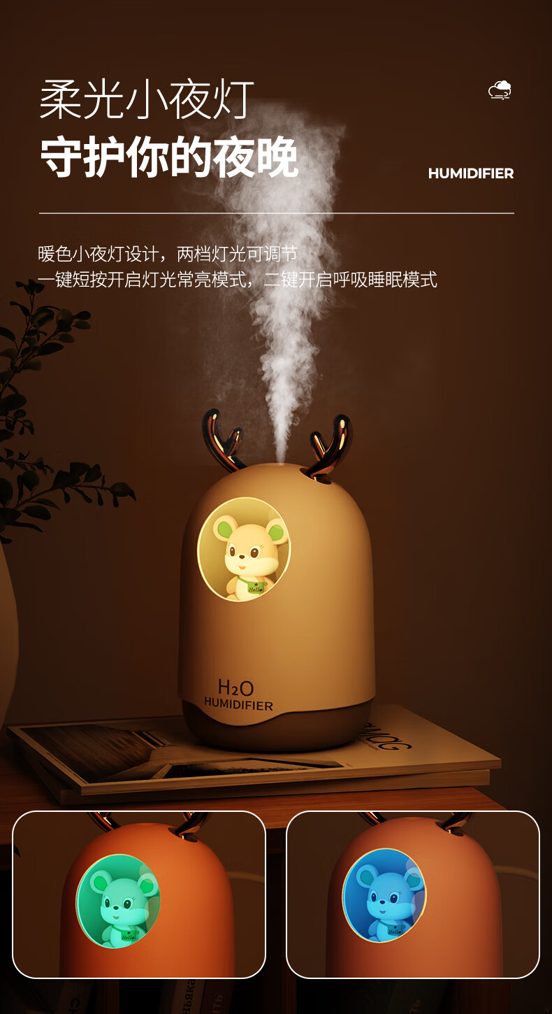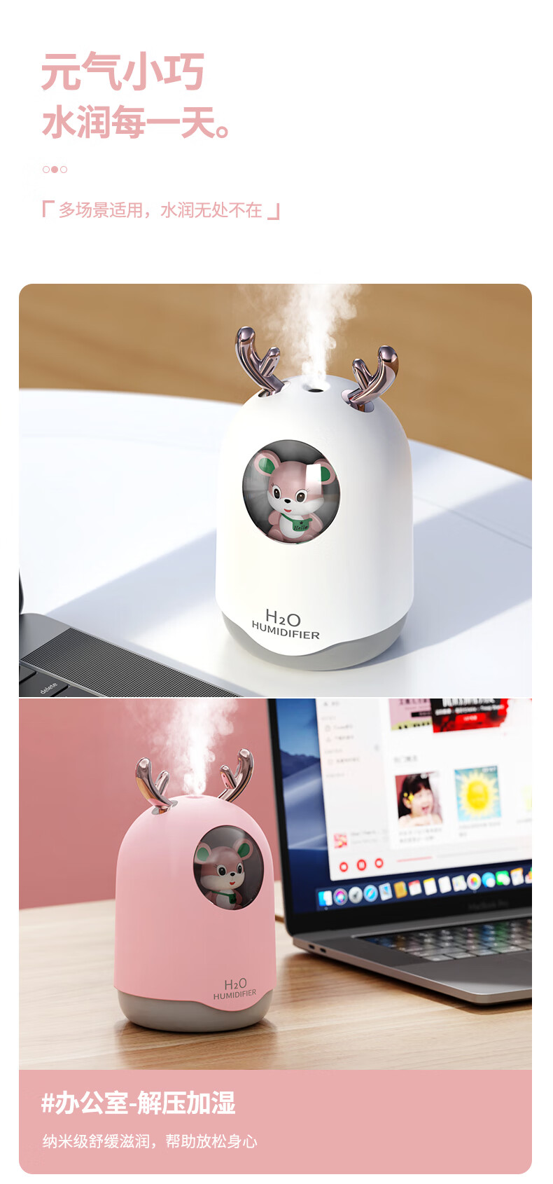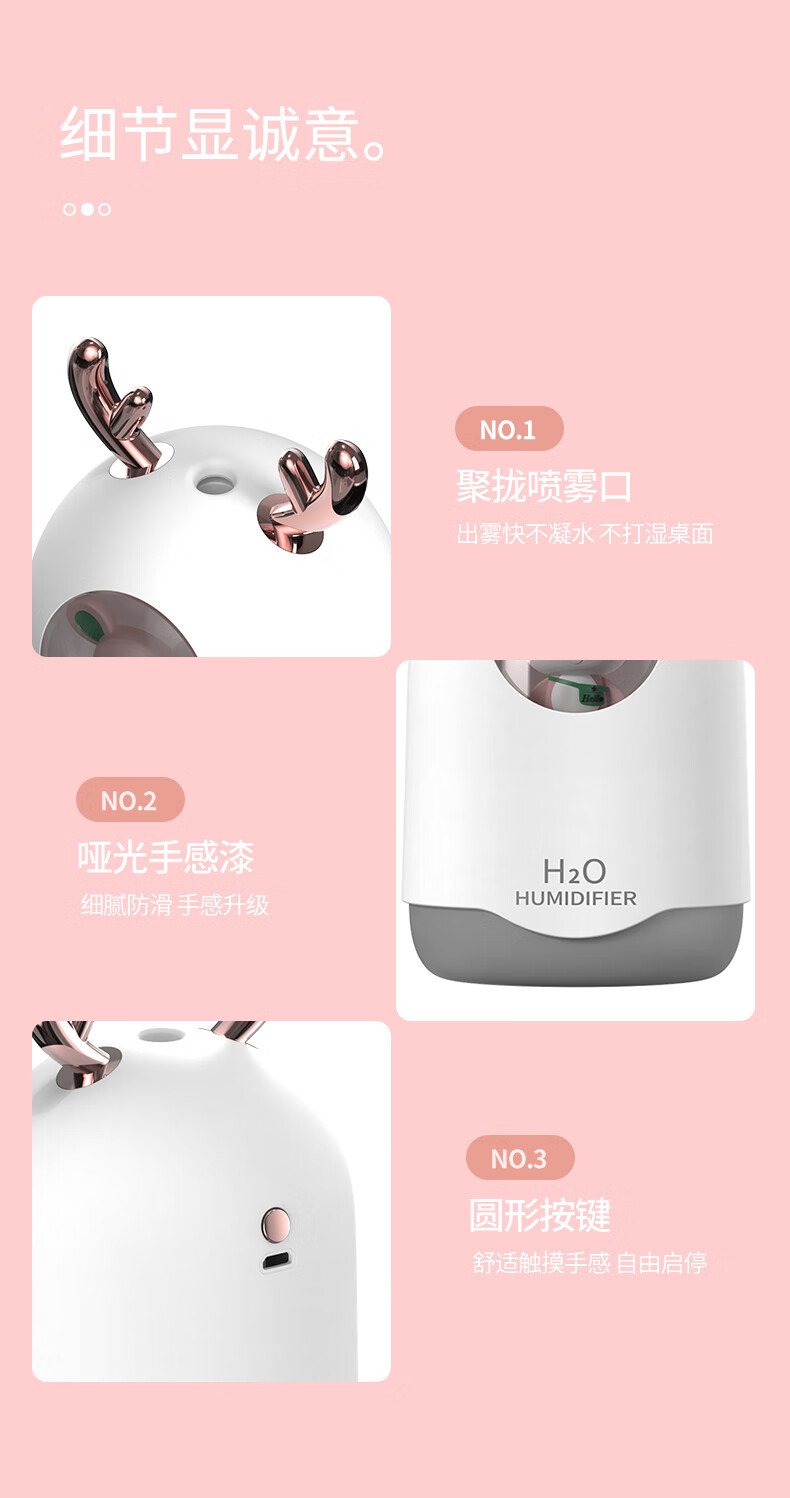 米波迪(Meebordi)【情人节礼物】空气加湿器家用超静音便携迷你大雾空气净化器萌宠保湿补水仪喷雾卧室美容仪 白
