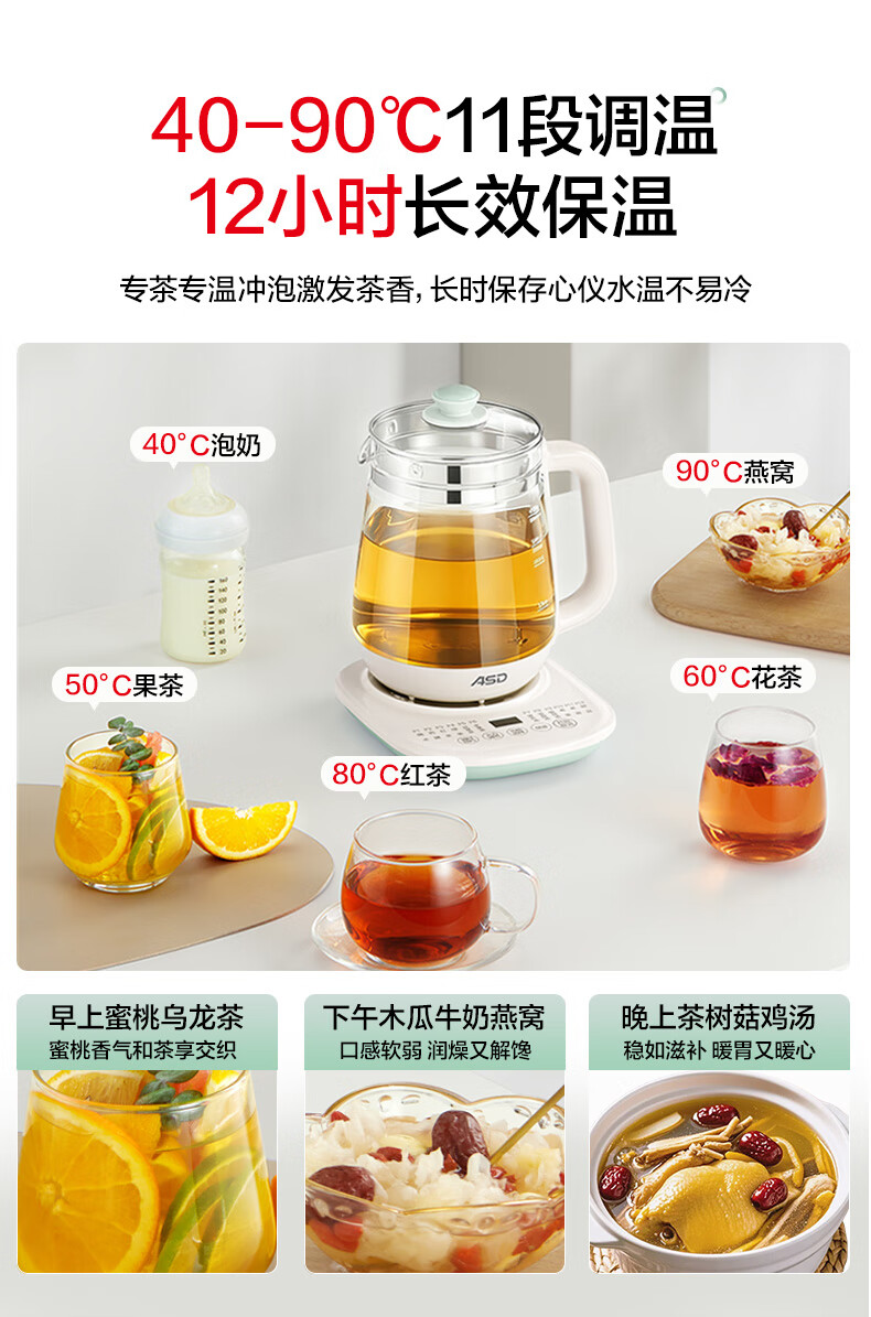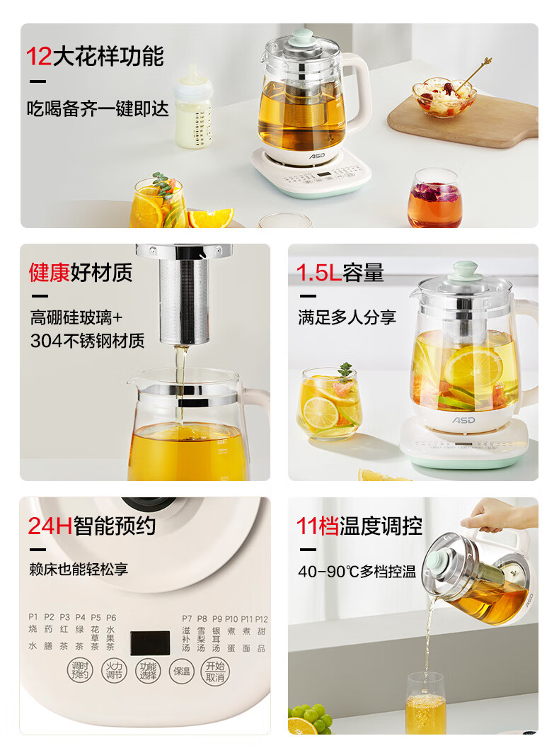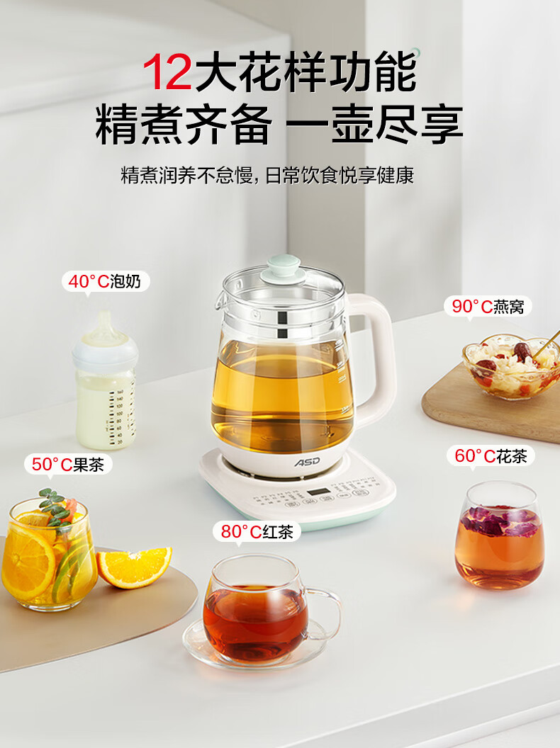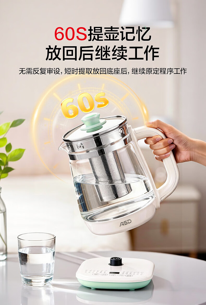 爱仕达(ASD)养生壶 煮茶壶 恒温水壶 24H可预约恒温壶烧水一体智能电热水壶花茶壶烧水壶11档功能 1.5L大容量