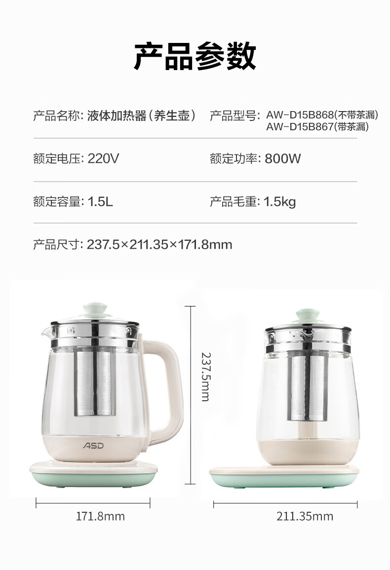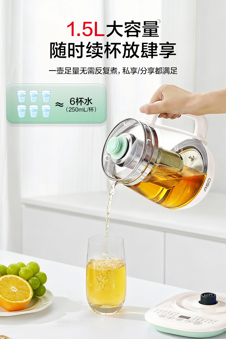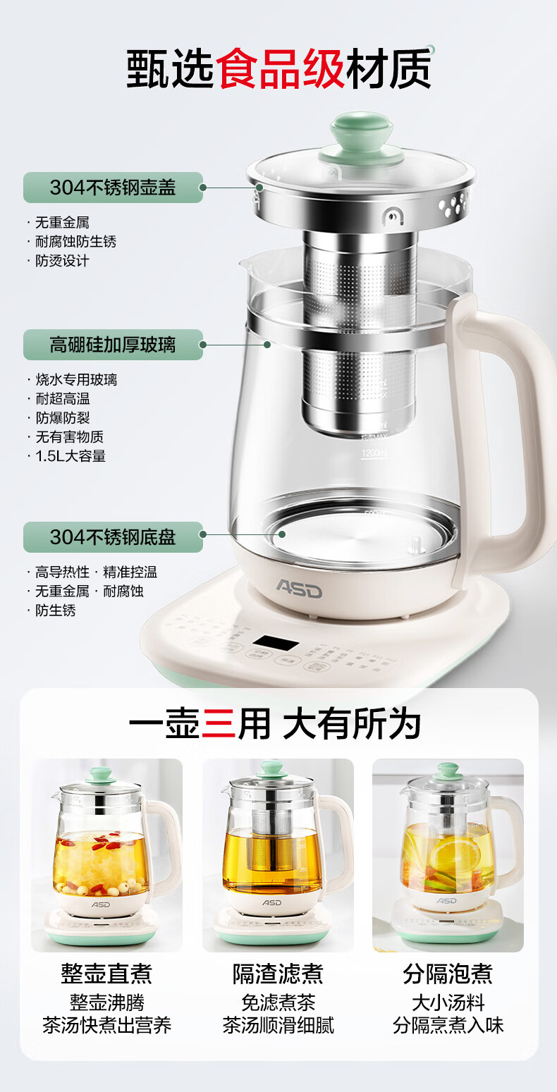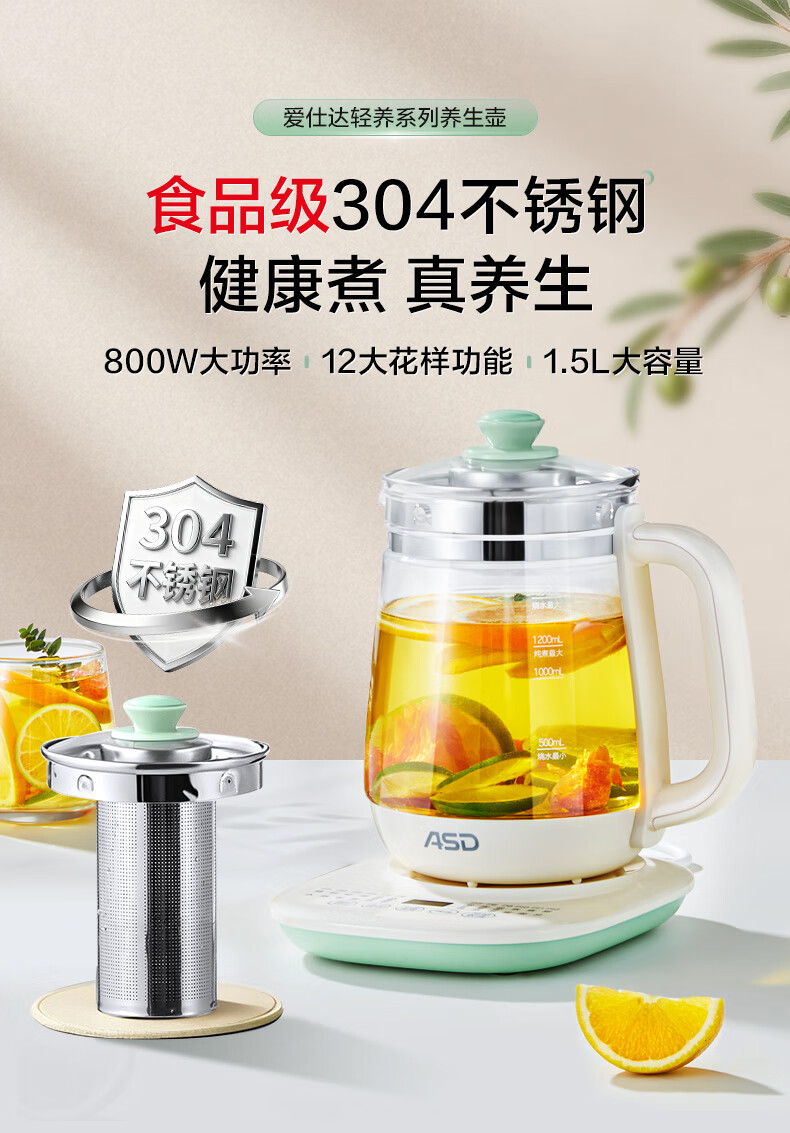 爱仕达(ASD)养生壶 煮茶壶 恒温水壶 24H可预约恒温壶烧水一体智能电热水壶花茶壶烧水壶11档功能 1.5L大容量
