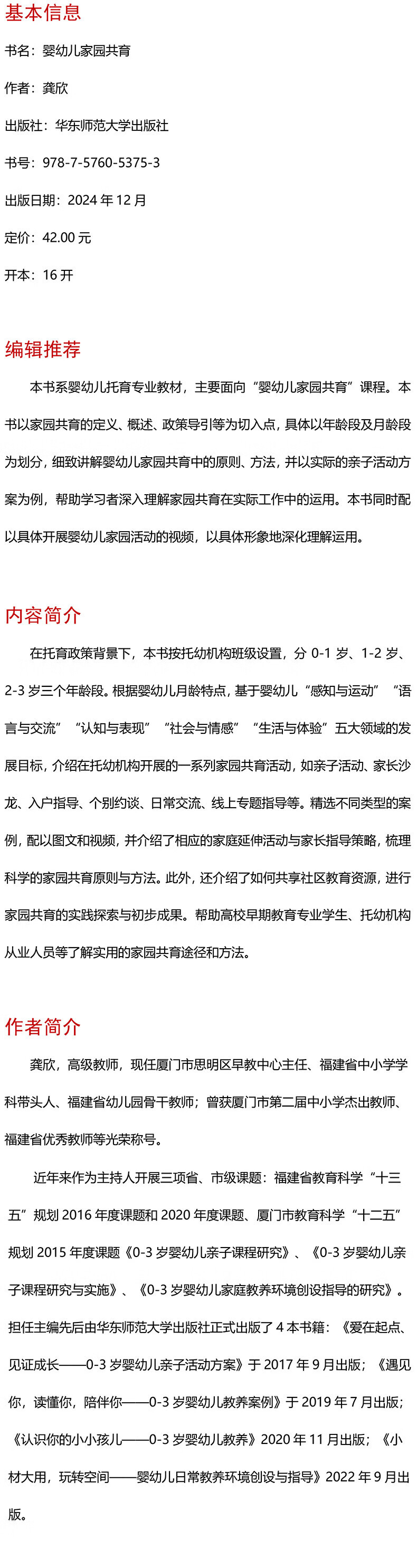 新华正版 婴幼儿家园共育 教育