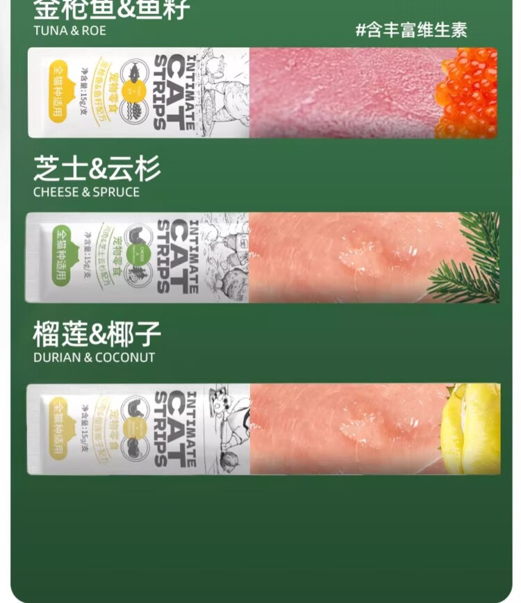 库卫试用猫条营养增肥发腮补水成幼猫鱼油猫条猫咪15g*10支