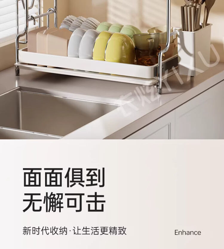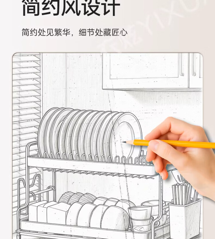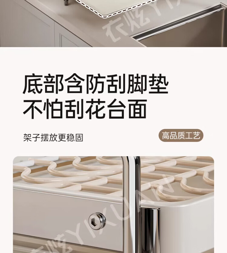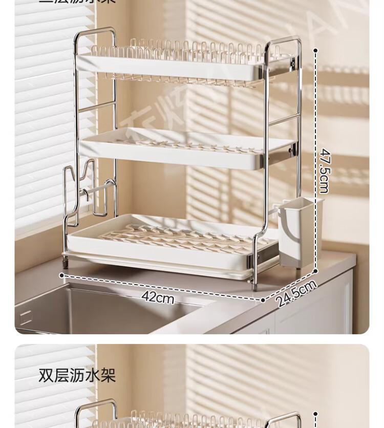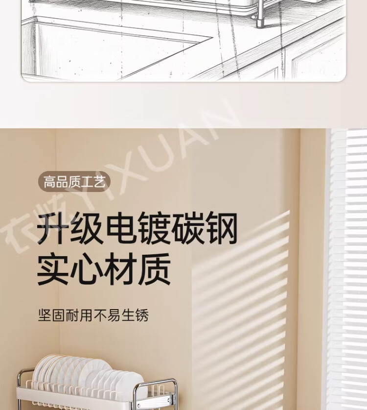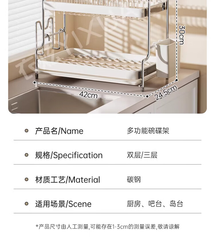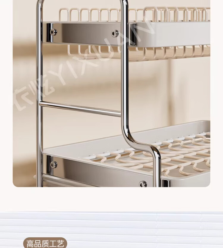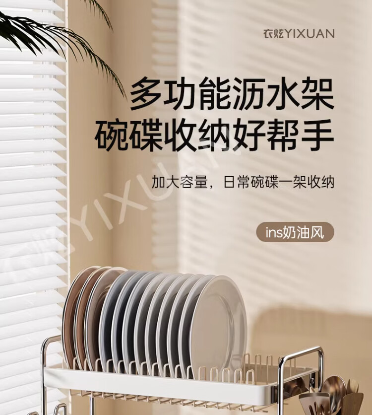 衣炫加厚碗碟收纳架沥水碗盘架厨房置物架家用筷子盒台面装餐具滤水篮 【实心碳钢】40cm双层碗碟沥水架 送筷筒+砧板架